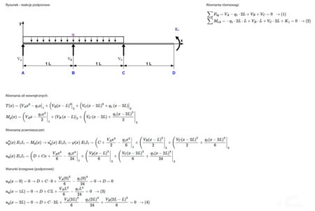 Eqiu.Beam – Reakcje, równania sił wewnętrznych i równania przemieszczeń