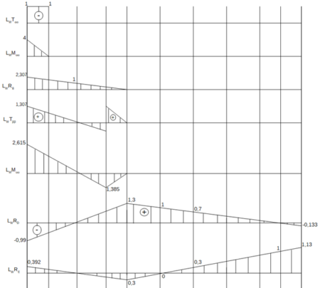 Linia wpływu – Kratownica z belką połączoną przegubem – wykresy linii wpływu