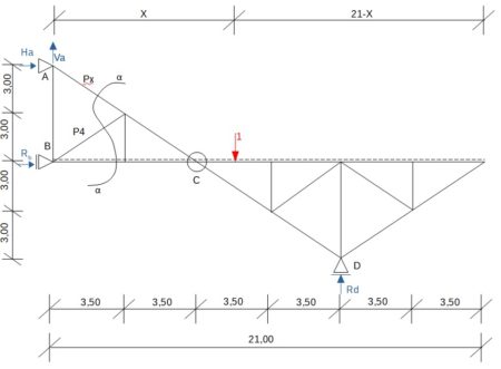 Linia wpływu w kratownicy dwuczęściowej połączonej przegubem