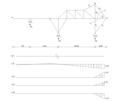 3 Linia wpływu w kratownicy połączonej przegubem z belką – Lw3
