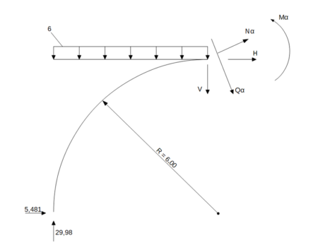 Łuk przegubowy swobodnie podparty – przekrój 1-1