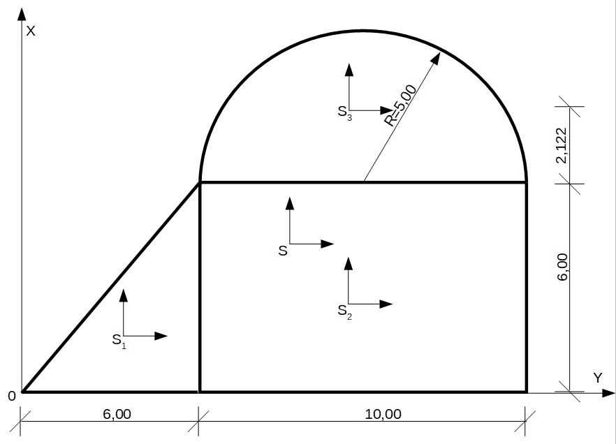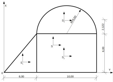 Figura płaska złożona z prostokąta, trójkąta i łuku.
