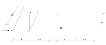 Obliczenie przemieszczeń w ramie dwuprzegubowej – Siły wirtualne przemieszczenie poziome Ua – M