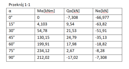 Łuk 3 – przekrój 1-1 tabela