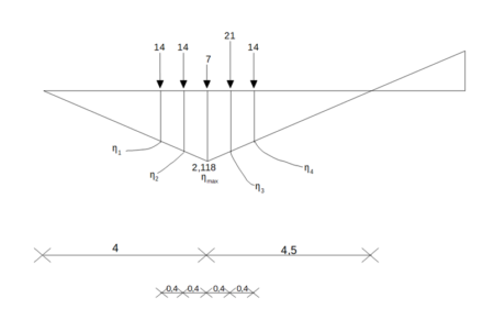 Posługiwanie się liniami wpływu w belce – Linia wpływu – Mmax