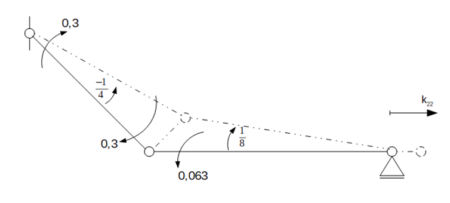 Rama z siłą rozłożoną pod kątem metodą przemieszczeń – reakcja k22