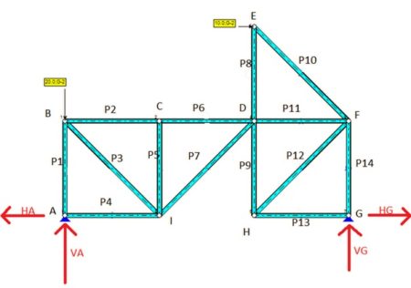 Schemat kratownicy dwuczęściowej połączonej przegubem