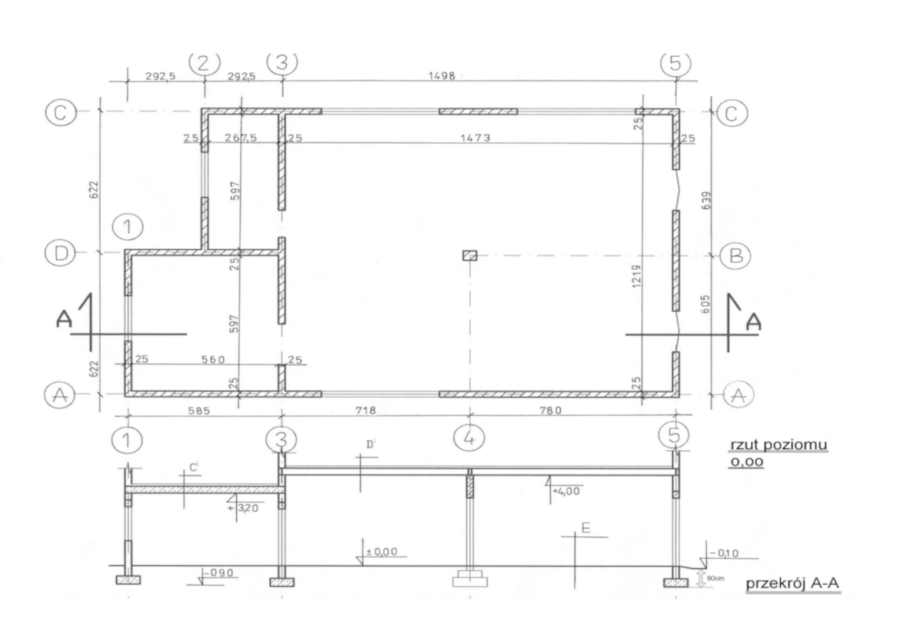 Rzut i przekrój budynku
