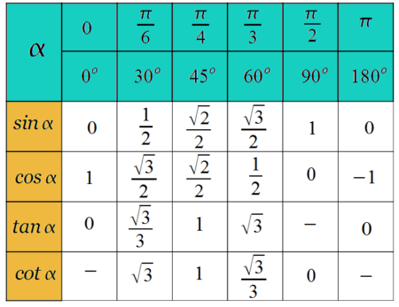 Podstawowe wartości funkcji trygonometrycznych