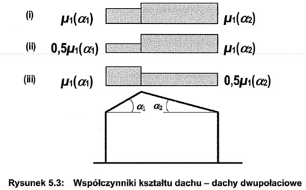 Współczynnik kształtu dachu – dachu dwupołaciowe- obciążenie śniegiem