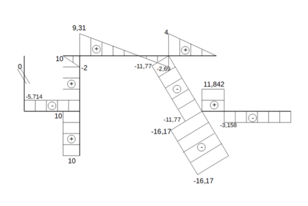 Rozbudowana rama wieloprzegubowa – wykres sił wewnętrznych T
